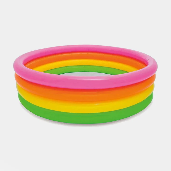 Make every summer day a fun-filled adventure with the Intex Sunset Glow Pool For Kids. This spacious, rainbow-colored 3-ring inflatable pool is designed to bring joy, laughter, and hours of cooling off for children and their friends. Perfect for backyard fun, it provides a safe, colorful, and engaging space for kids to splash, play, and enjoy water adventures.